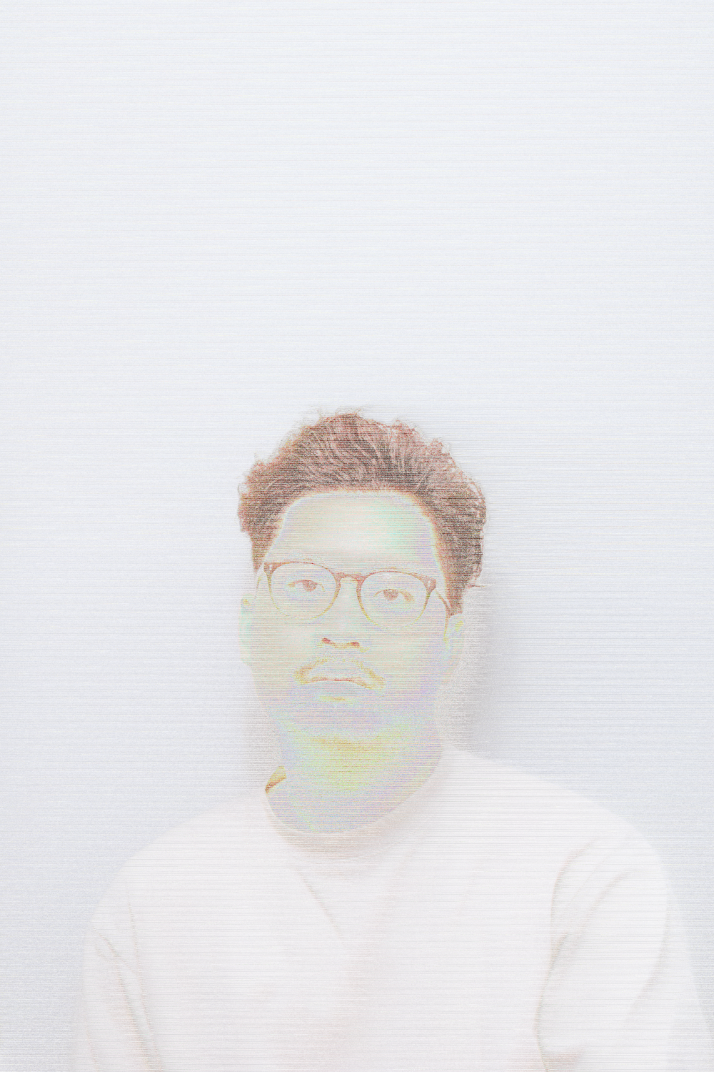 I took a self-portrait photo and broke it down to a bitmap file—making the image into an array of numbers that describe the color of each pixel. Then, I imported the image to Audacity, the image editing software, and started messing with the "audio" wave/track. For one of the photos, I inversed the wave, with another I added a phase shift, and then with one more I added an echo and decay to it.